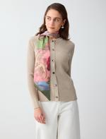• Bayan Bej Melanj Yuvarlak Yaka Uzun Kollu Simli Triko Hırka